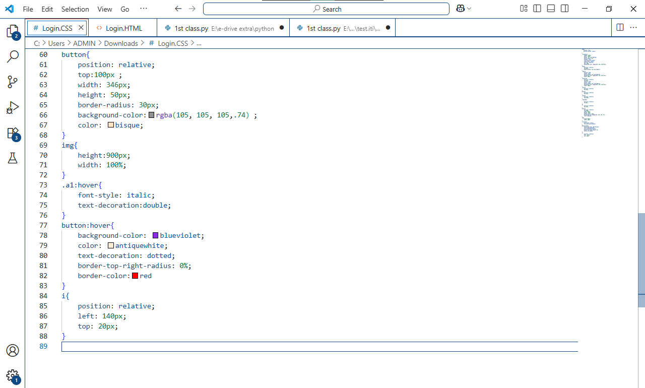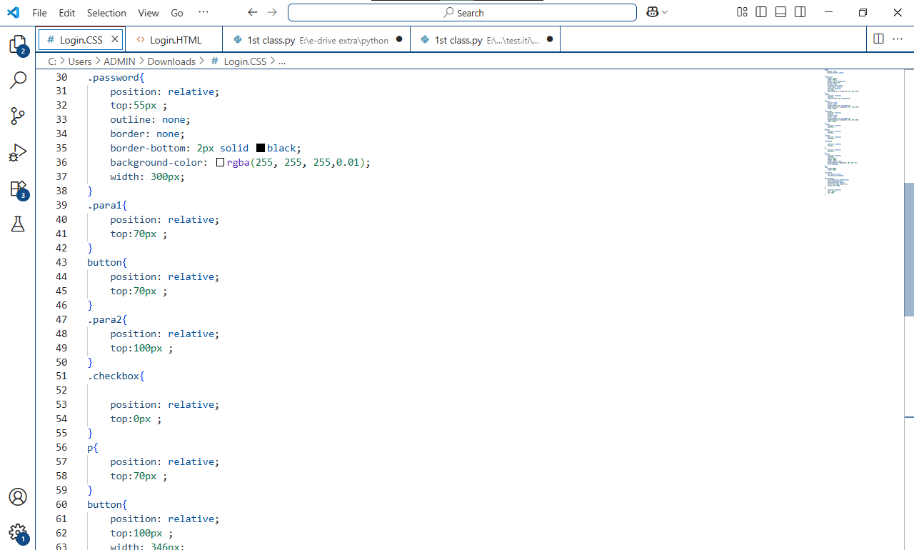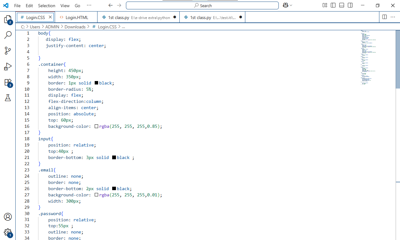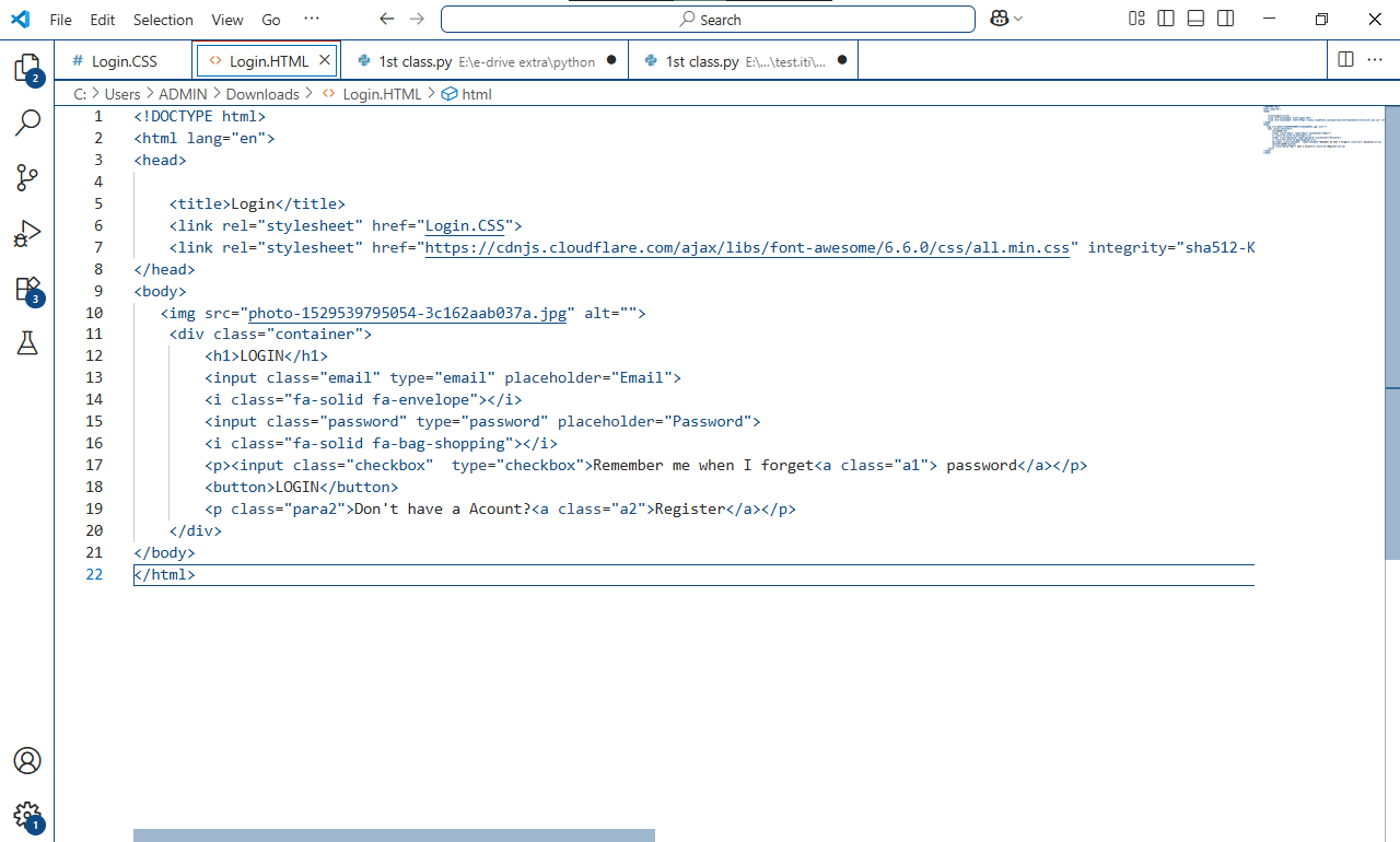 • Save the CSS styling in a file named Login.CSS in the same directory as your HTML file.