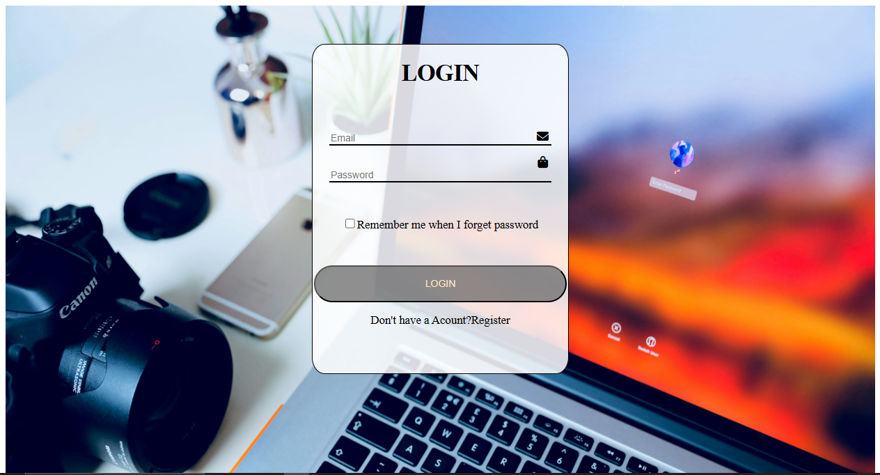 • The design is minimal and clean. It includes fields for the user to enter their email and password, a login button, and a nice background image to make the login page visually appealing.